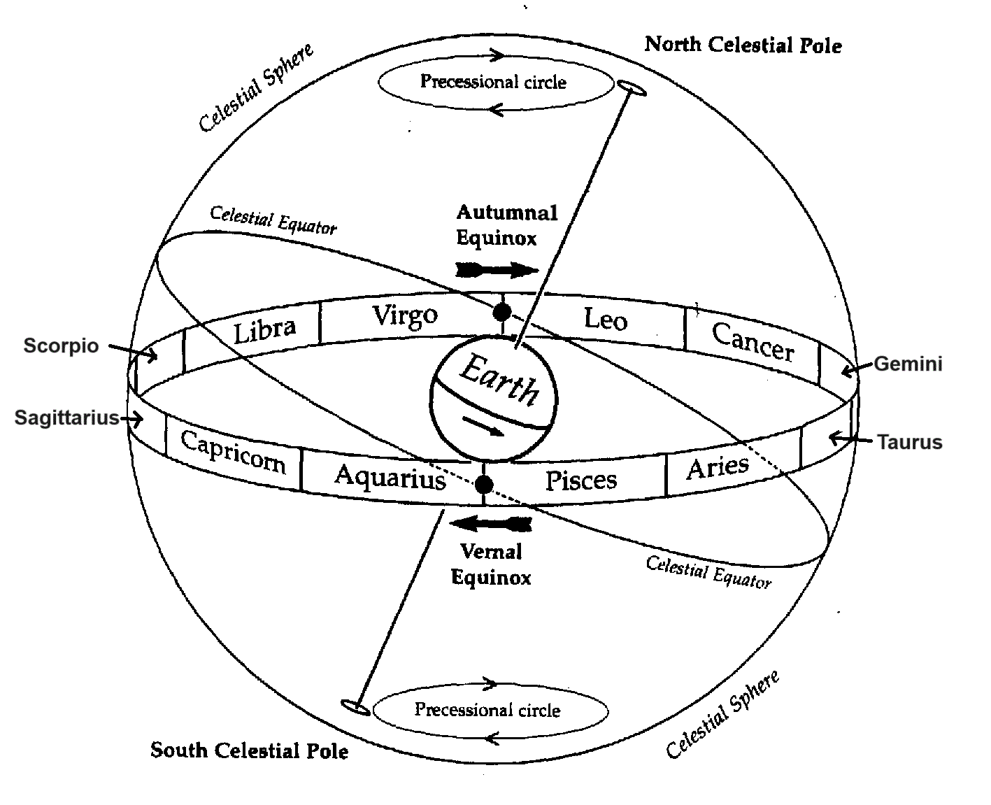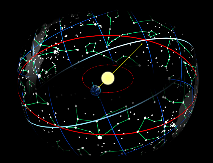 Whereas the ecliptic motion of the Earth leads to the existence of the four ecliptic seasons 1) Ecliptic Spring, 2) Ecliptic Summer, 3) Ecliptic Autumn and 4) Ecliptic Winter within a year, the celestial motion leads to the existence of the 12 celestial-influenced Zodiac Constellations, namely: After the Vernal Equinox - 1) Celestial Zodiac Aquarius 2) Celestial Zodiac Capricornus 3) Celestial Zodiac Sagittarius 4) Celestial Zodiac Scorpius 5) Celestial Zodiac Libra 6) Celestial Zodiac Virgo of the Southern Zodiac Constellationsin the Southern hemisphere, and after the Autumnal Equinox - 7) Celestial Zodiac Leo 8) Celestial Zodiac Cancer 9) Celestial Zodiac Gemini 10) Celestial Zodiac Taurus 11) Celestial Zodiac Aries 12) Celestial Zodiac Pisces of the Northern Zodiac Constellations in the Northern hemisphere all of which  takes 25,776 years to complete.  Each zodiac constellation has about 2148 years to celestially or cosmically influence Earth civilizations and historical sociocosmic species at the MI-FA Interval of the (our) Ray of Creation.